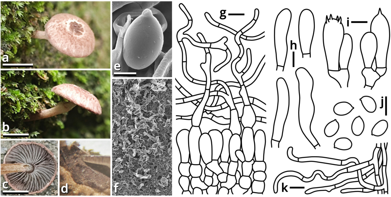 从化层蘑菇是2025年发现于广州的层蘑菇属物种。主要特征是菌盖上被鳞屑状至纤维状的紫褐色鳞片;菌褶离生至弯生,土灰色至棕色;菌环易碎;担孢子4.5–5 × 3–3.5 µm,椭圆形,厚壁,光滑,棕色至深棕色;菌盖中部鳞片膜皮型至毛皮型,菌盖表面为棒状至近圆柱状...... | ![]() |